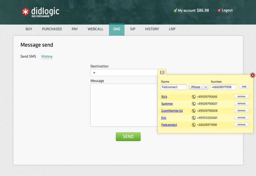 DID Logic offers web-based or API based outbound SMS capability for all accounts. Inbound SMS service must be linked to the Mobile DID product, available to Business accounts only.