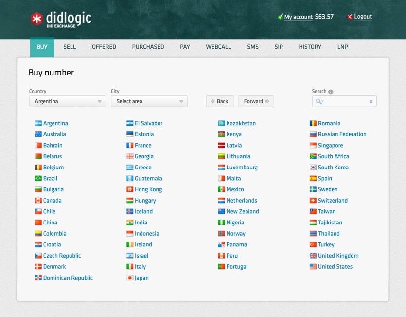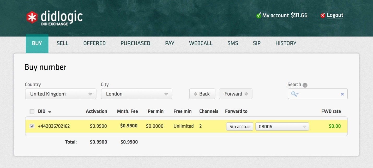 Select and Purchase your new DID via the tab Labelled “Buy”