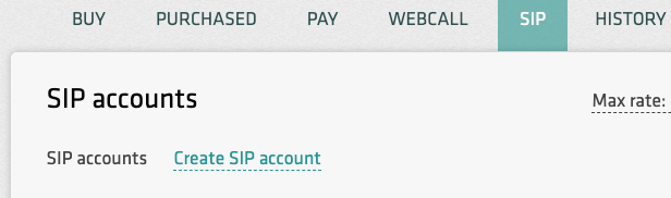 On the tab labeled “SIP” click on the “Create SIP account” link in order to set up your SIP credentials and set security limitations.