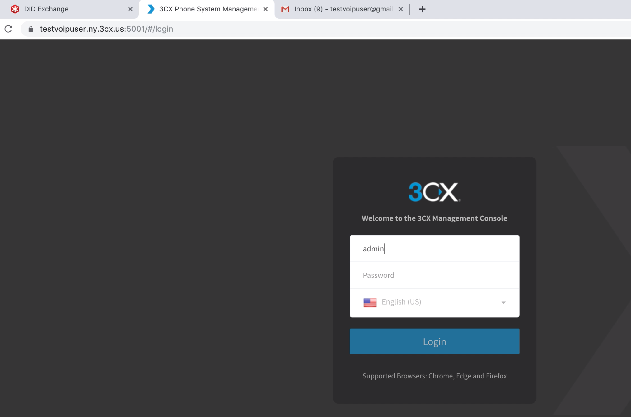 Start by logging into the 3CX Management Console.