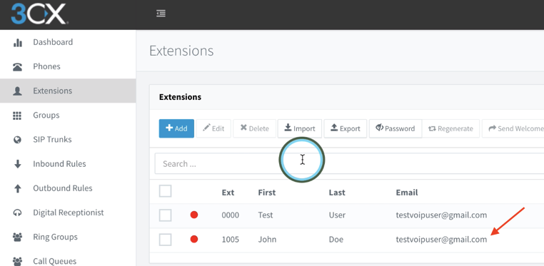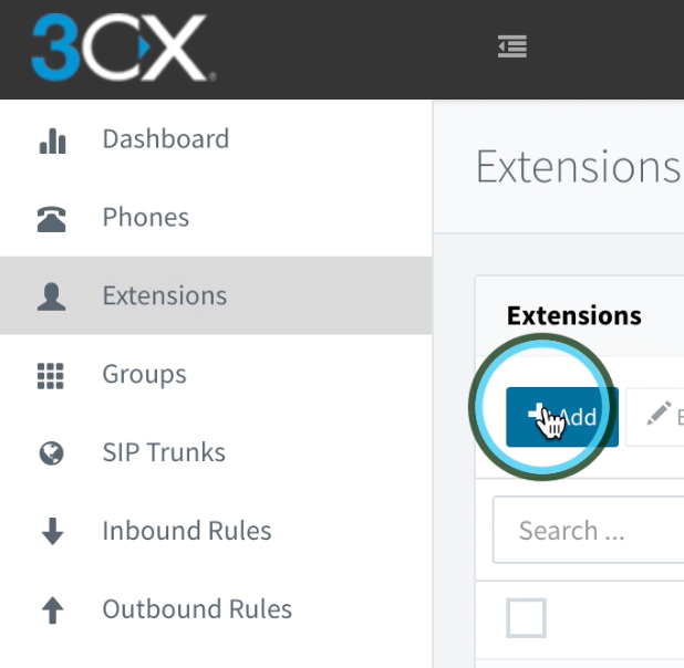 From the 3CX Management Console Dashboard, go to the left-hand column and click on the section called “Extensions” and then click the “Add” button.