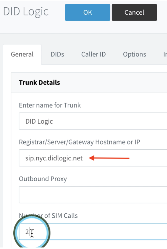 For this guide, we will be using sip.nyc.didlogic.net. So we will update the Gateway Hostname with the Regional Proxy hostname. Also, we will update the “Number of SIM Calls” to 2.