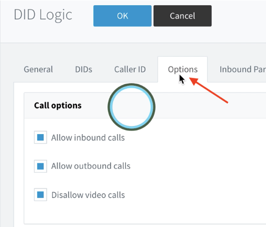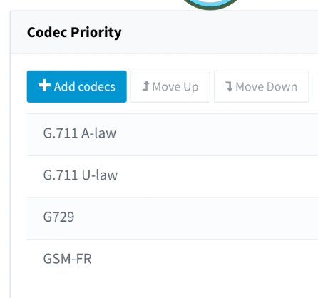 Also in the Options tab towards the bottom of the page are the Codec Priority Settings. DID Logic Supports the codecs listed below but recommends the G.711 for most use cases.