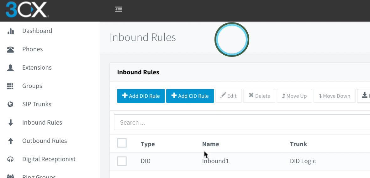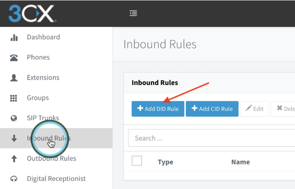 To start, navigate to the Inbound Rules sections and click on the blue “Add DID Rule” button
