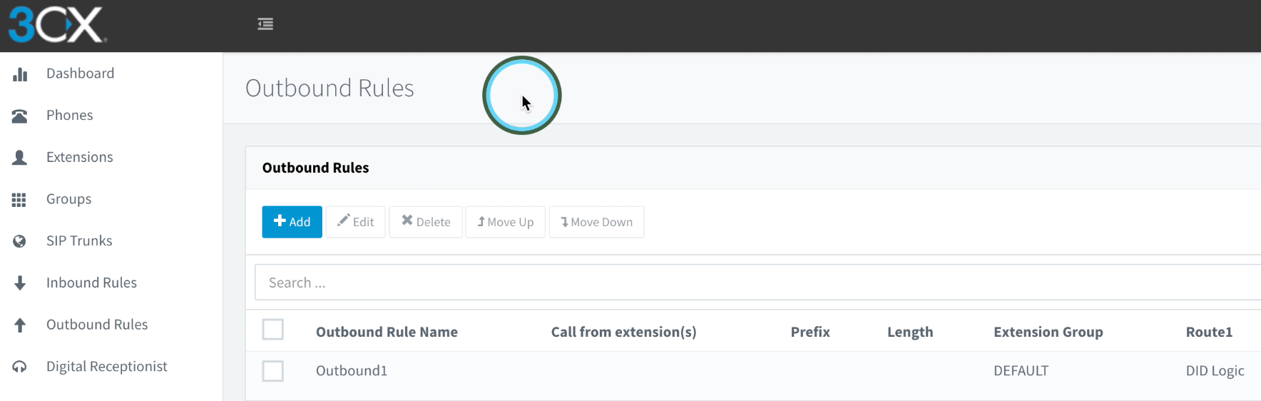 Next, we will configure the Inbound Rules in 3CX, which will control how 3CX will process inbound calls. Note: The steps below are just a basic configuration we are using to make a simple inbound test call. For information regarding the more advanced features of 3CX (including Inbound and Outbound rules configuration), please see the links below: