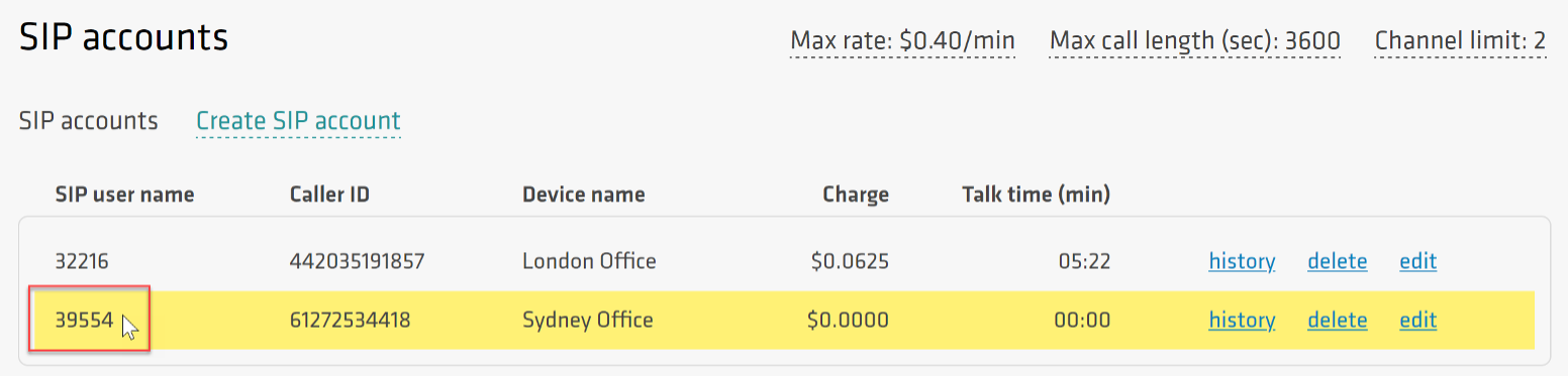 Once SIP Account is created, you will see a 5-digit number that you should use as Username to authenticate your SIP device with DID Logic.