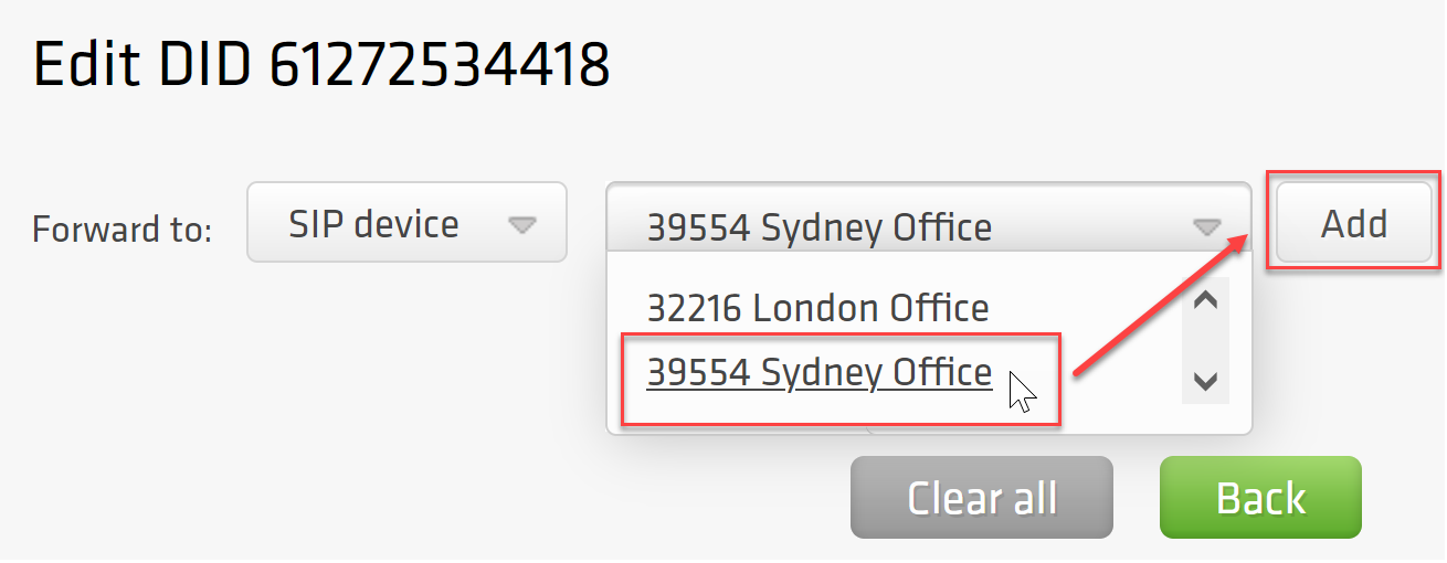 - SIP device: incoming calls will be routed to the respective SIP account if there is an active registration on any of the DID Logic gateways