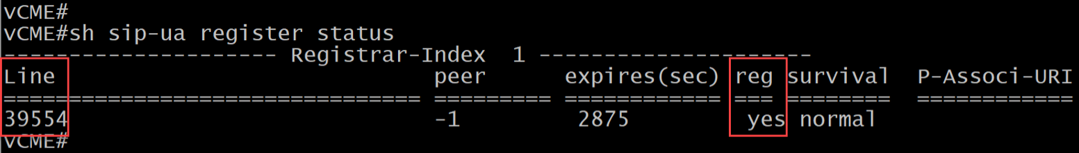 Once the configuration is completed, you can verify SIP Account registration using the ‘show sip-ua register status’ command: