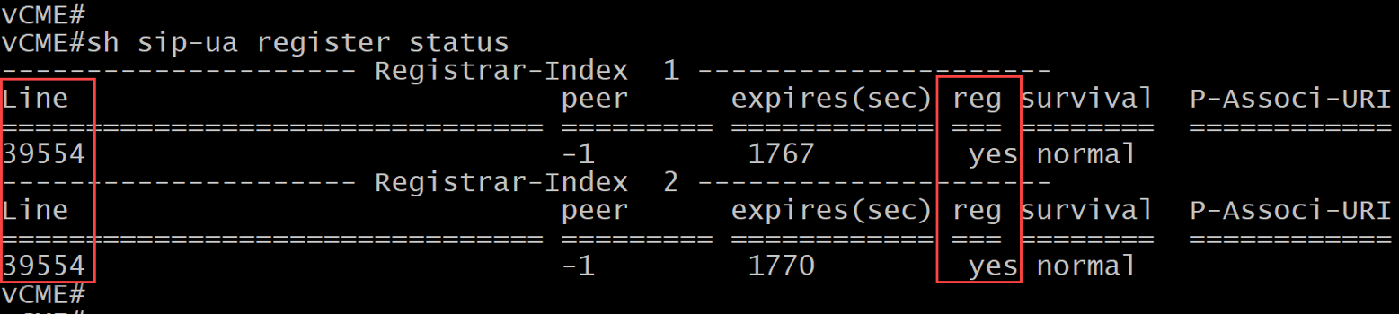 If registration is successful, you will see ‘yes’ in the reg column for your SIP Account Line on both regional gateways.