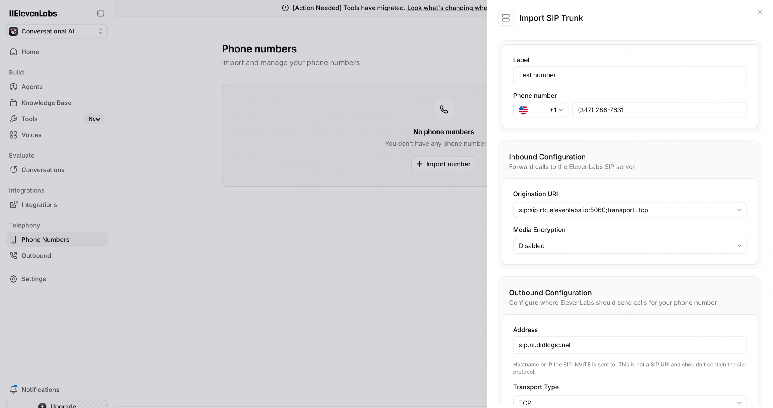 Connecting DIDlogic numbers to ElevenLabs