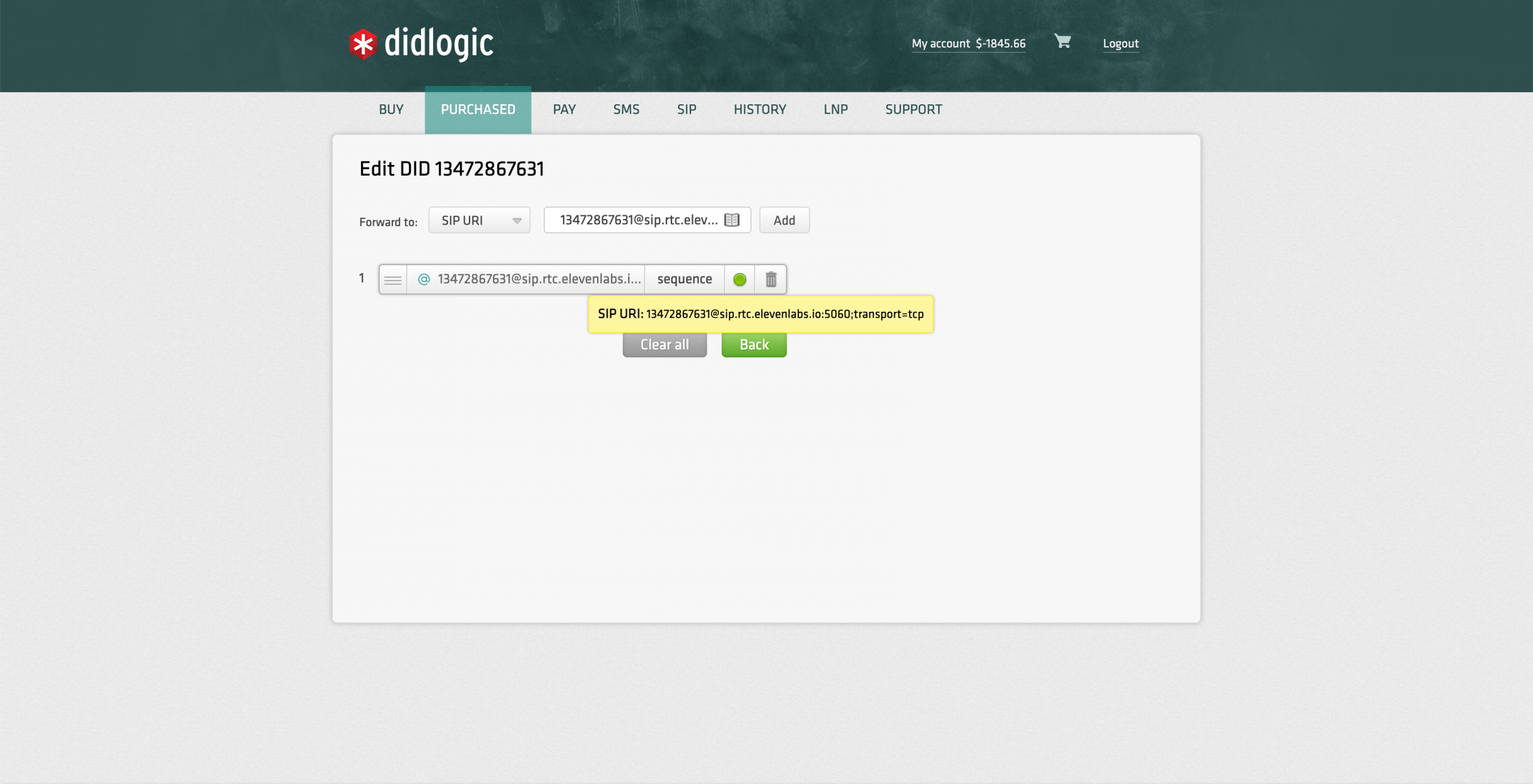 - Log into your DIDlogic account.