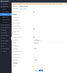 Once the trunk is open, at the top click on Advanced Settings, then scroll down until you find Outbound Proxy Support and enable the setting. Then type in your Outbound Proxy as needed: