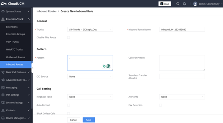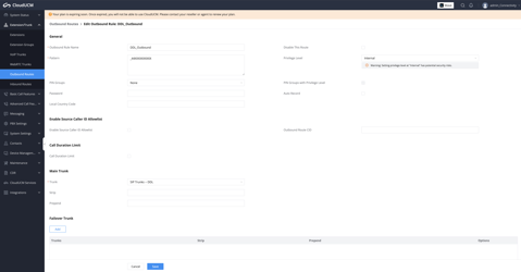 Please refer to the Call Route Management article for more information on configuring outbound and inbound rules.