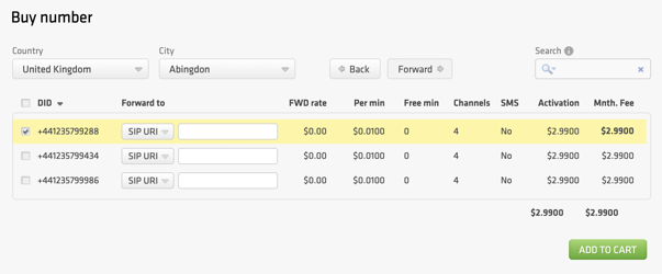 - You will be redirected to the Cart where you can confirm your choice and check out the DID(s).