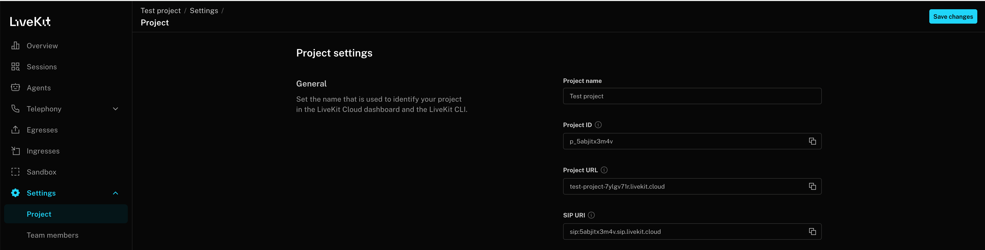 - FQDN is SIP URI of your LiveKit AI platform. You can find your SIP URI by navigating to the ‘Settings’ section and then selecting the ‘Project’ page, where it is displayed under the “SIP URI” field. We’ll use only the part after the colon to configure inbound call routing on DIDlogic.