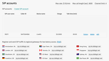 Address: Enter a DIDlogic regional gateway that is closest to your location. The list of regional gateways can be found under SIP Accounts in the SIP tab on the user portal.