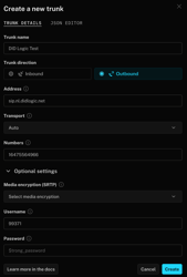 - Click Create, and your new trunk will appear in the Outbound trunks section.