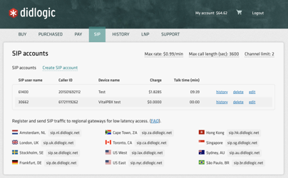 sip.***.didlogic.net – instead of *** please select one of DIDLogic’s regional SIP gateways. The full list located at the bottom of the “SIP” tab when you log in to http://stg.didlogic.dev.