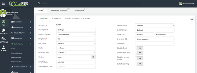 After concluding the portal configurations, proceed with the Trunk creation on VitalPBX.