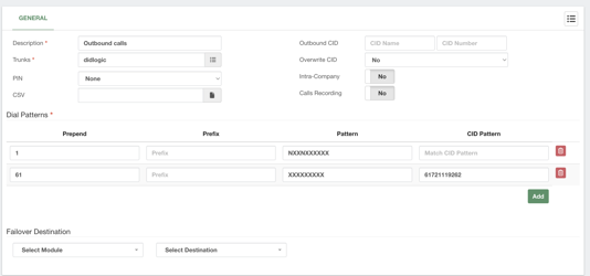 After the verification that the trunk is up and running, create the outbound route to place calls using our PJSIP trunk.